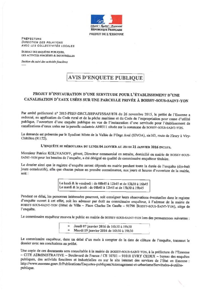 26 novembre 2015 Boissy-sous-Saint-Yon : Vers la mise hors service d’un collecteur en bord de cours d’eau