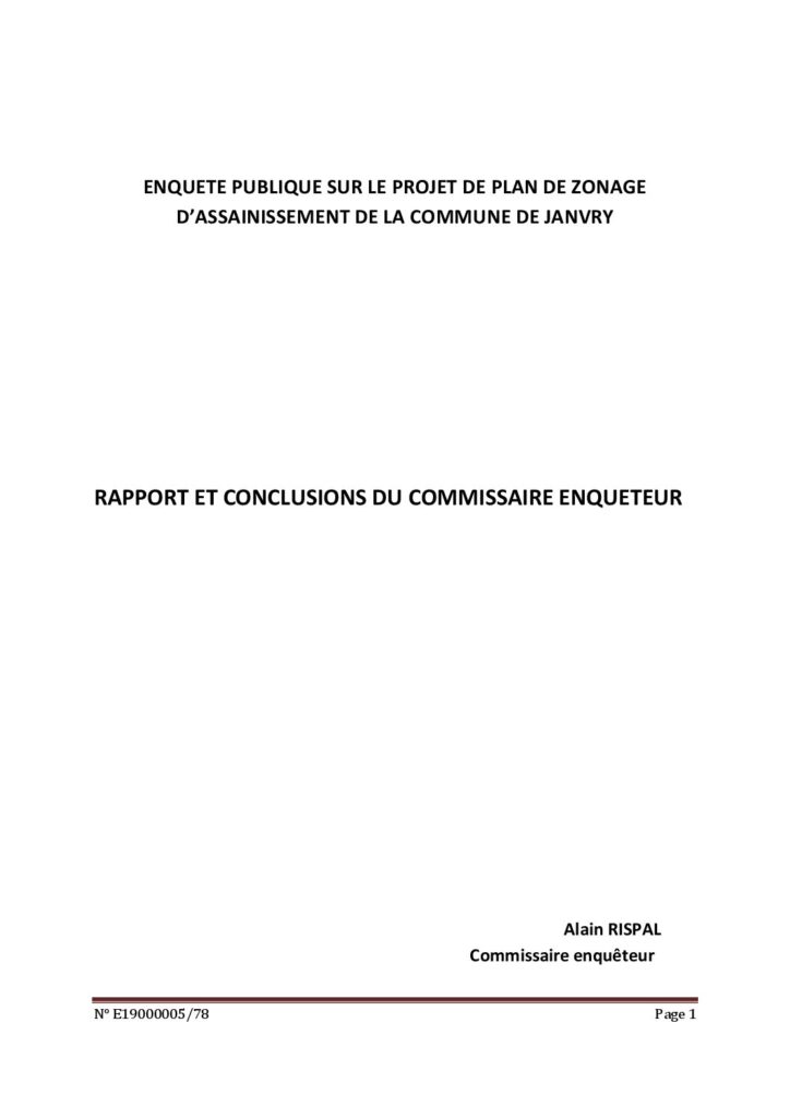 16 décembre 2021 Rapport d’enquête publique concernant le projet de zonage d’assainissement des eaux pluviales de 15 communes de l’Essonne Zonage d’assainissement des eaux pluviales de 15 communes de l’Essonne Rapport d’enquête Avis et Conclusions du Commissaire Enquêteur